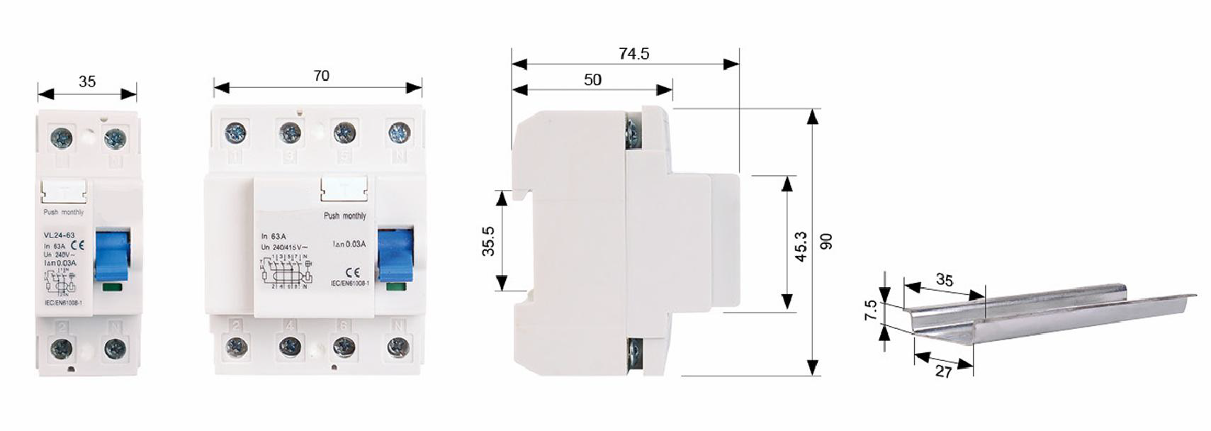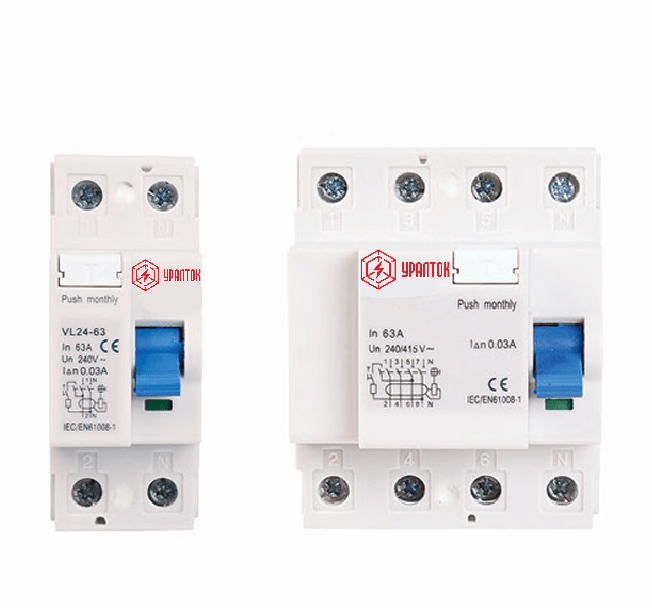 Устройство защитного отключения серии УВ24-63 термоактивный (без защиты от сверхтоков) применяется для переменного тока 50 Гц, номинальное напряжение 240 В 2 полюса, 415 В 4 полюса, номинальный ток до 63 А. Когда происходит поражение человека электрическим током или ток утечки в сети превышает установленные значения, УЗО отключает питание неисправности в течение очень короткого времени, чтобы защитить безопасность человека и электрооборудования. Он также может функционировать как нечастое переключение цепей.
