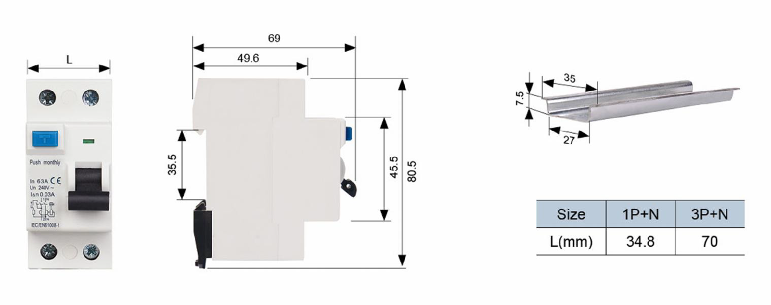 | Номинальные параметры напряжения (Un) | Переменный ток: 240В ~ 1Р+N, 415 V ~ 3Р +N |